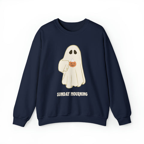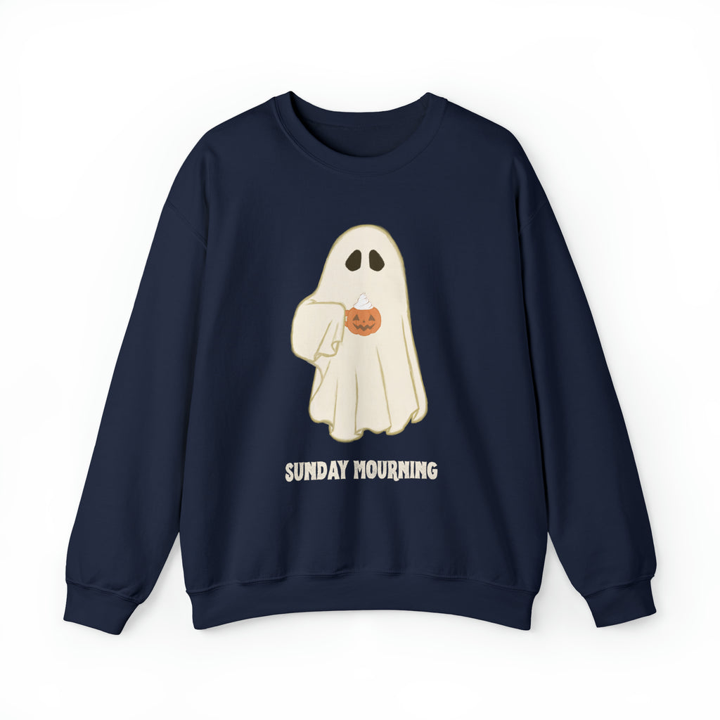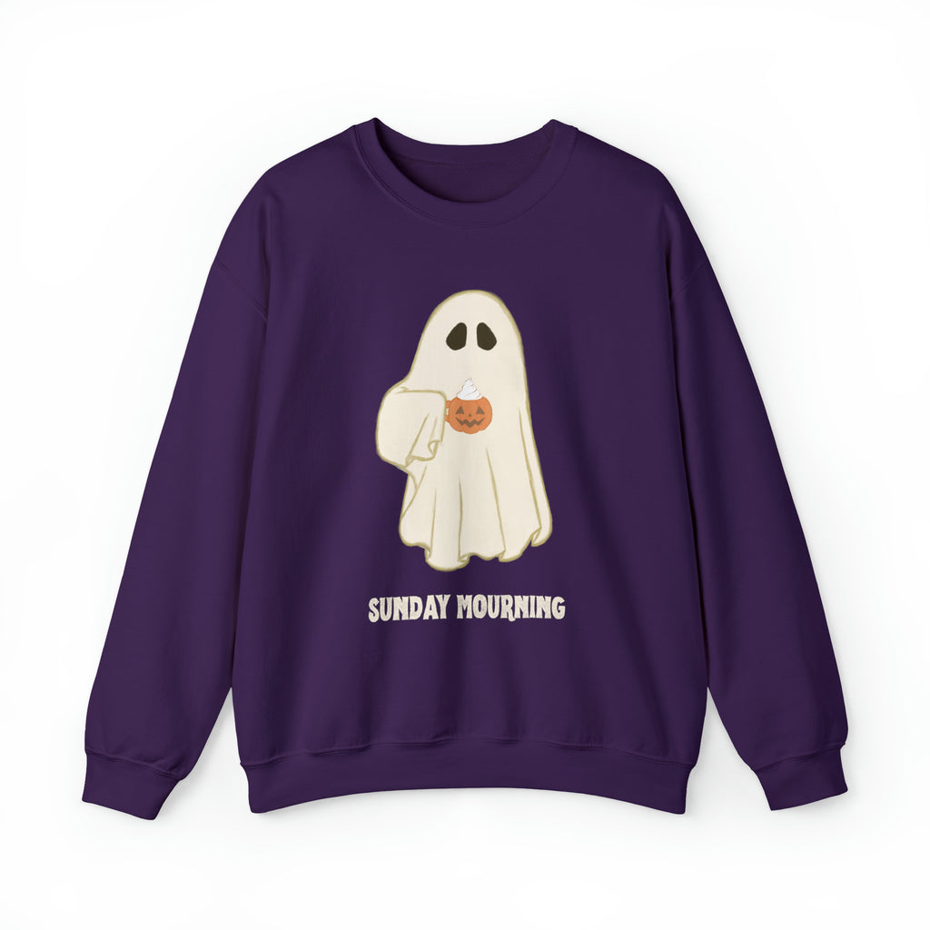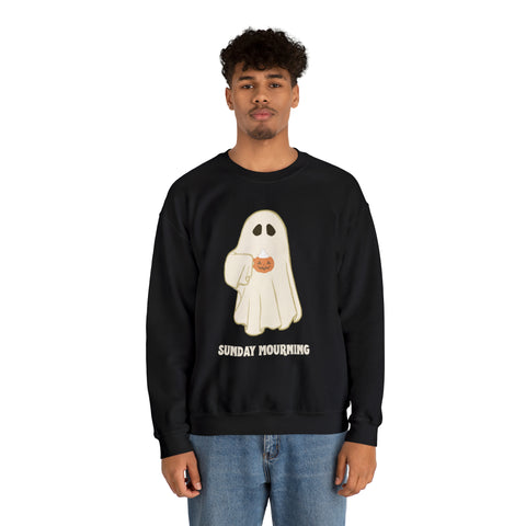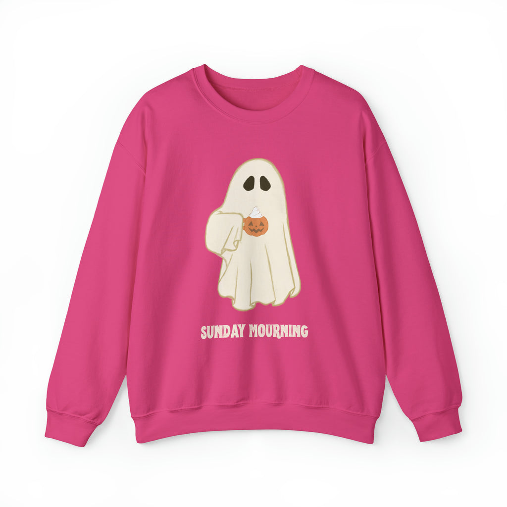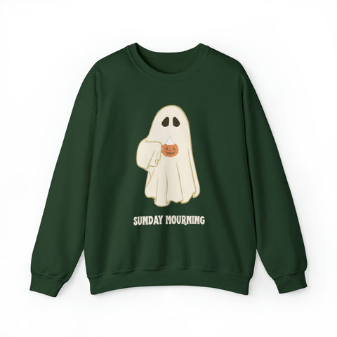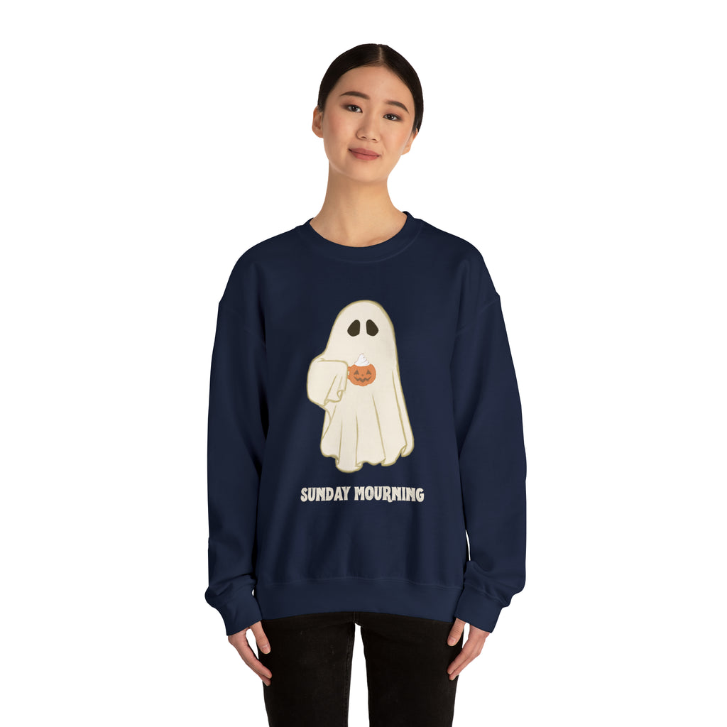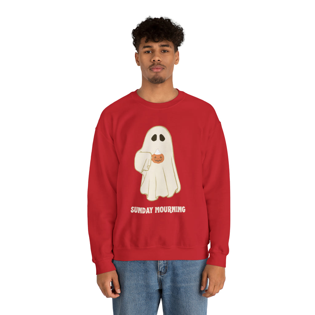 Cute Ghost "Sunday Mourning" Coffee Pumpkin Mug Unisex Heavy Blend™ Crewneck Sweatshirt | Fall Autumn | Gift Idea