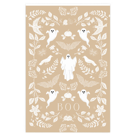 A gorgeous whimsical ghost wrapping paper featuring ornate bats and botanicals.